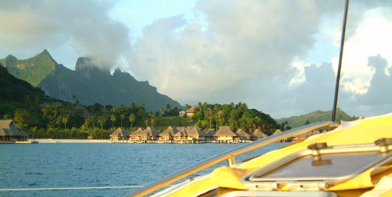 First, don't think you can't get here. Bora Bora is very reachable as a vacation destination. Once in Papeete, Tahiti, you're a short hop to the island paradise. While you're hopping, don't close your eyes. The colors are simply breathtaking. Some say there are more than five shades of blue/turquoise as you are coming over the lagoons and reefs.As you approach, you'll see the two towering peaks of black rock that dominate the center of Bora Bora. These are framed by the blue waters and world famous lagoon that captures your attention.