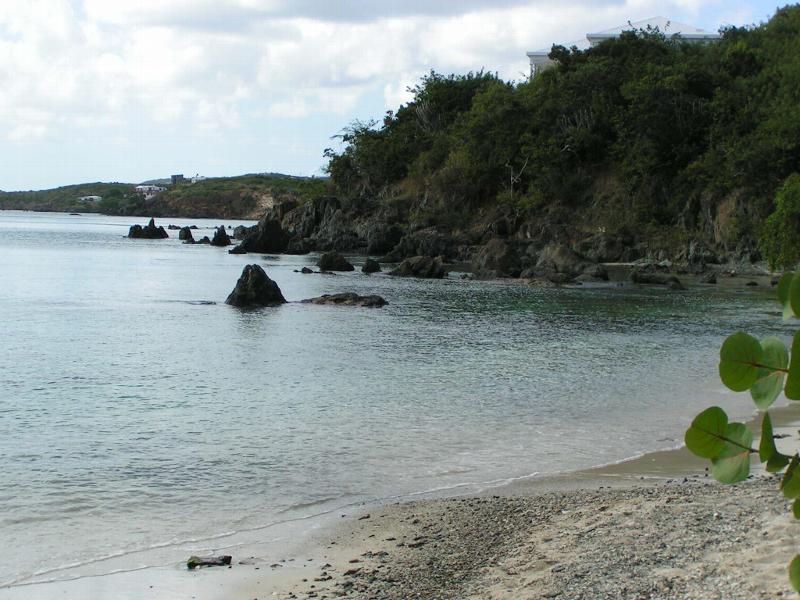 If I took you to this beach in St. Thomas and we walked along for a bit you certainly wouldn't believe me if I told you that it is one of the less frequented beaches on the Island. But it shouldn't be. The sand is fine and there are some very good shade spots on the beach. Plus, if you get adventuresome, there is some pretty good snorkeling along the left shoreline out to the point. There are rocks here and you just have to use a little common sense to know when it is calm and safe to go out. But there are a lot of fish to be seen and some nice coral, too. If you're into diving, this might not be the best beach to dive from, but then again, there are more dive sites around St. Thomas than you can shake a stick at.